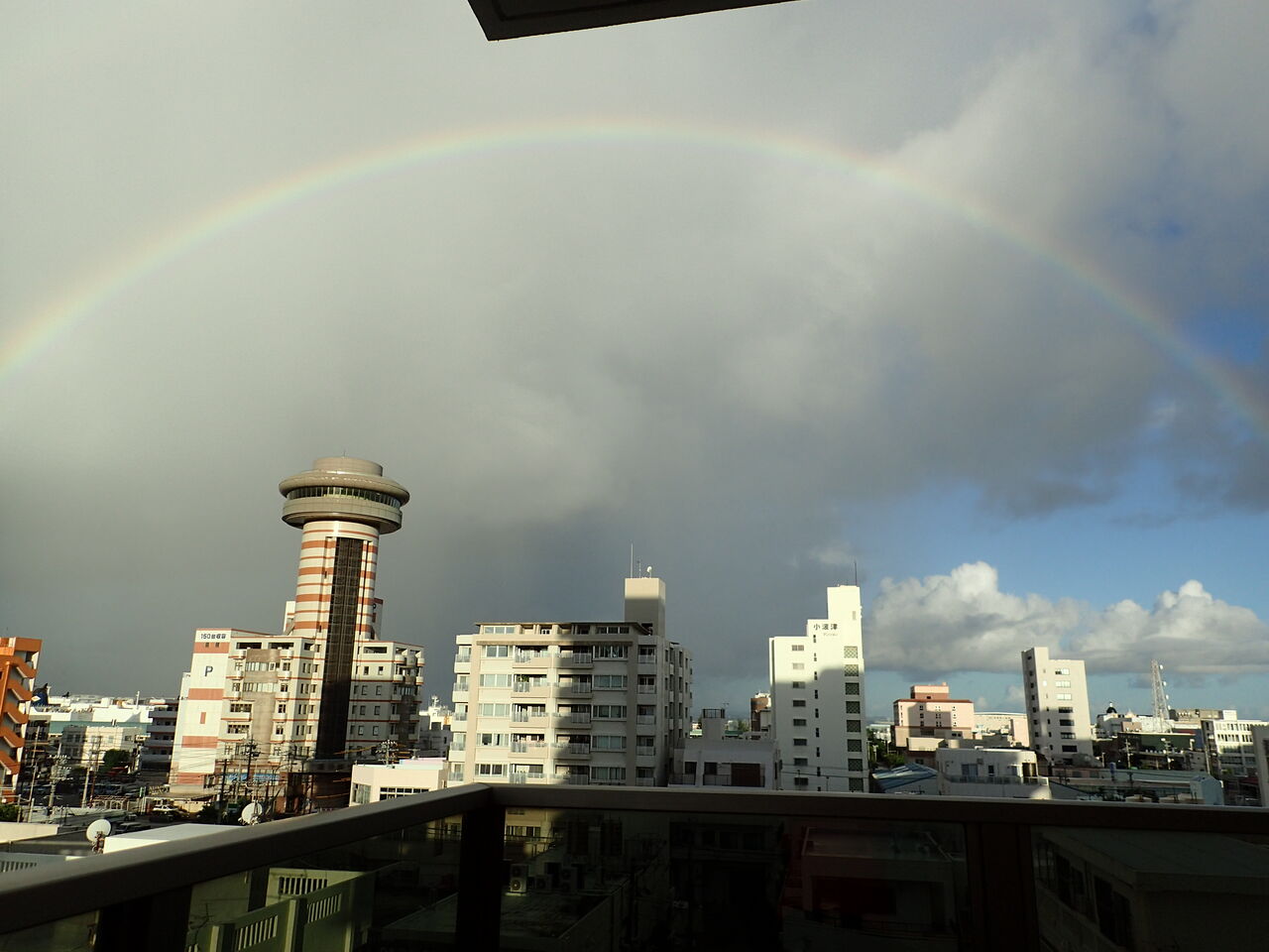 今朝は7時前にザーッとひと雨。そして久しぶりに大きな虹!