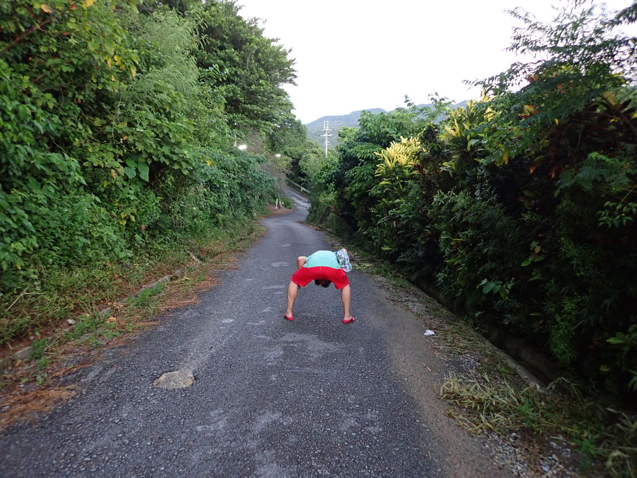 を飲んでいたので車は使えない。腹ごなしに歩いて10分位と言われたスーパーまで歩くことに。夕陽が綺麗な時刻、木に覆われた裏道をてくてく・・・