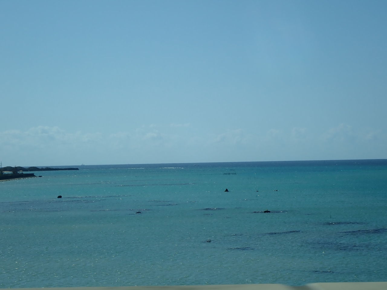 那覇への帰り道、ずーっと広がる海を車窓から眺めながら
