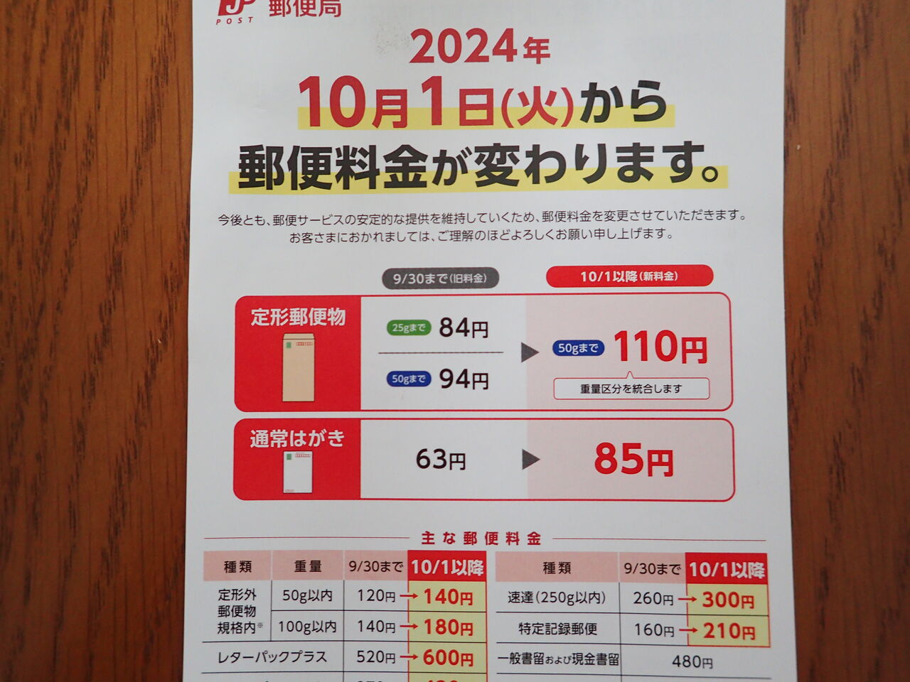 こんにちは、Nです。「またですか!」と言いたくなる郵便料金の値上げ。今回は結構大胆で定形郵便やはがきの値上げが大きいですね