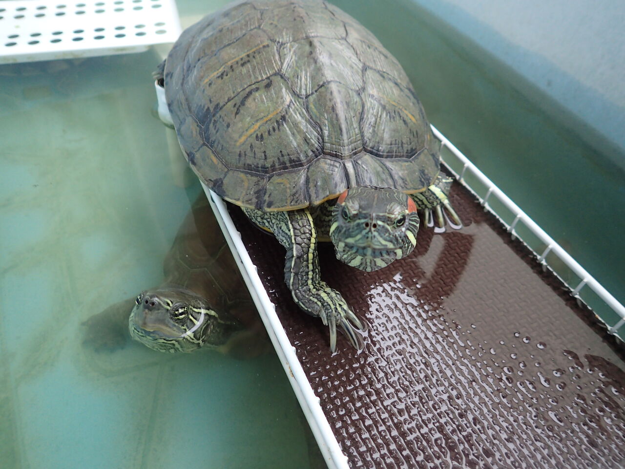 原因としては漫湖の上流域からの土砂や生活排水などの流入、マングローブ林の拡大による干潟面積の縮小などが考えられています。