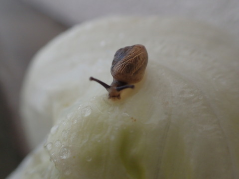 肌寒い朝になりました。アジサイはないけどカタツムリちゃんは元気です![]()