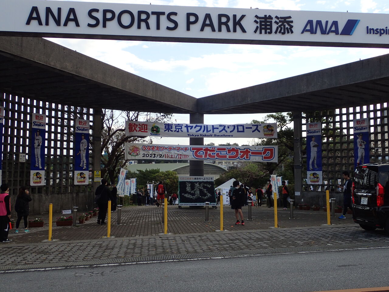 早めに家を出て集合場所へプロ野球キャンプもやっているので駐車場が心配でしたがまだ余裕があって無事停められました