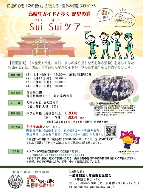 夏休みの特別企画、高校生ガイドと歩く 歴史の道『Sui Sui ツアー』に参加しませんか![]()