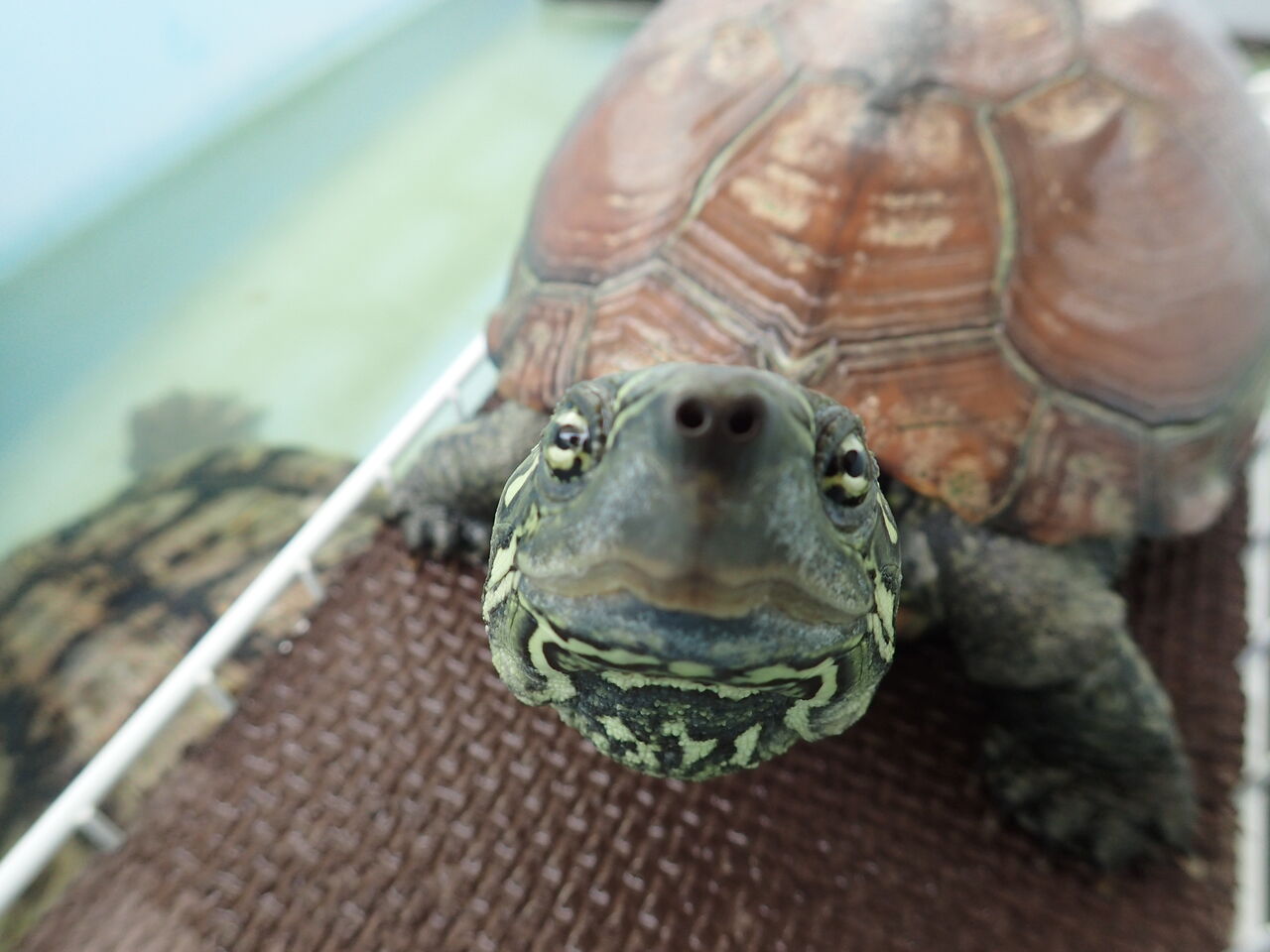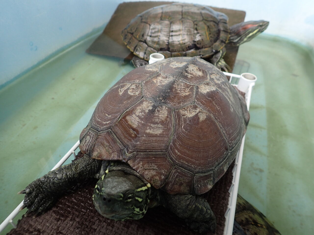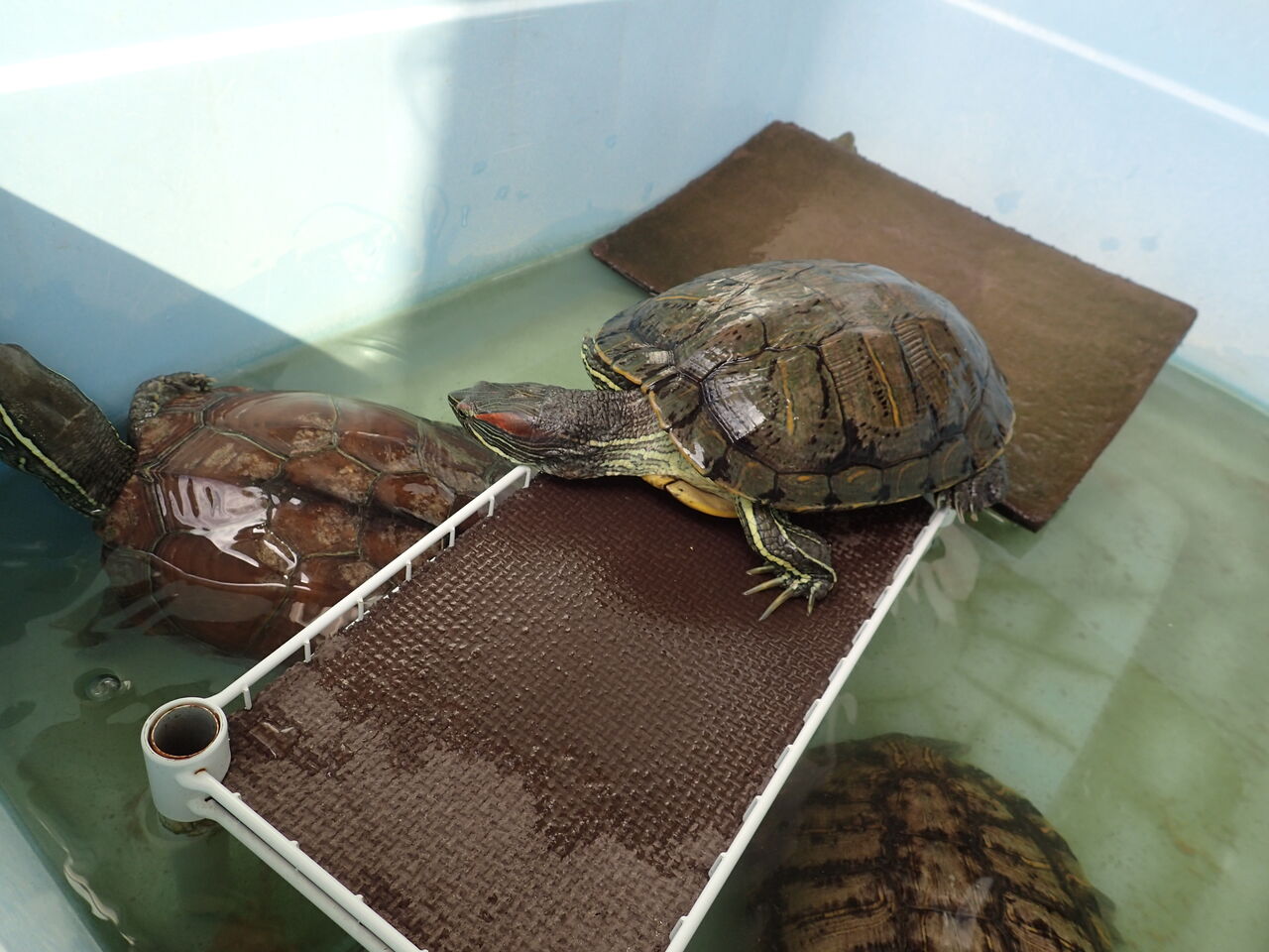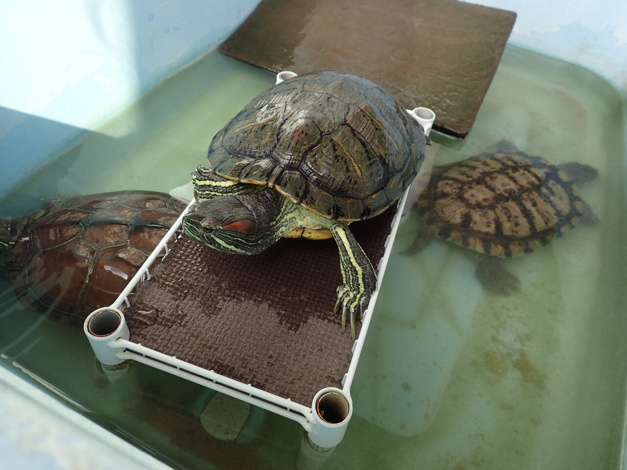 朝ご飯前のカメちゃん達。場所取り争い中![]()