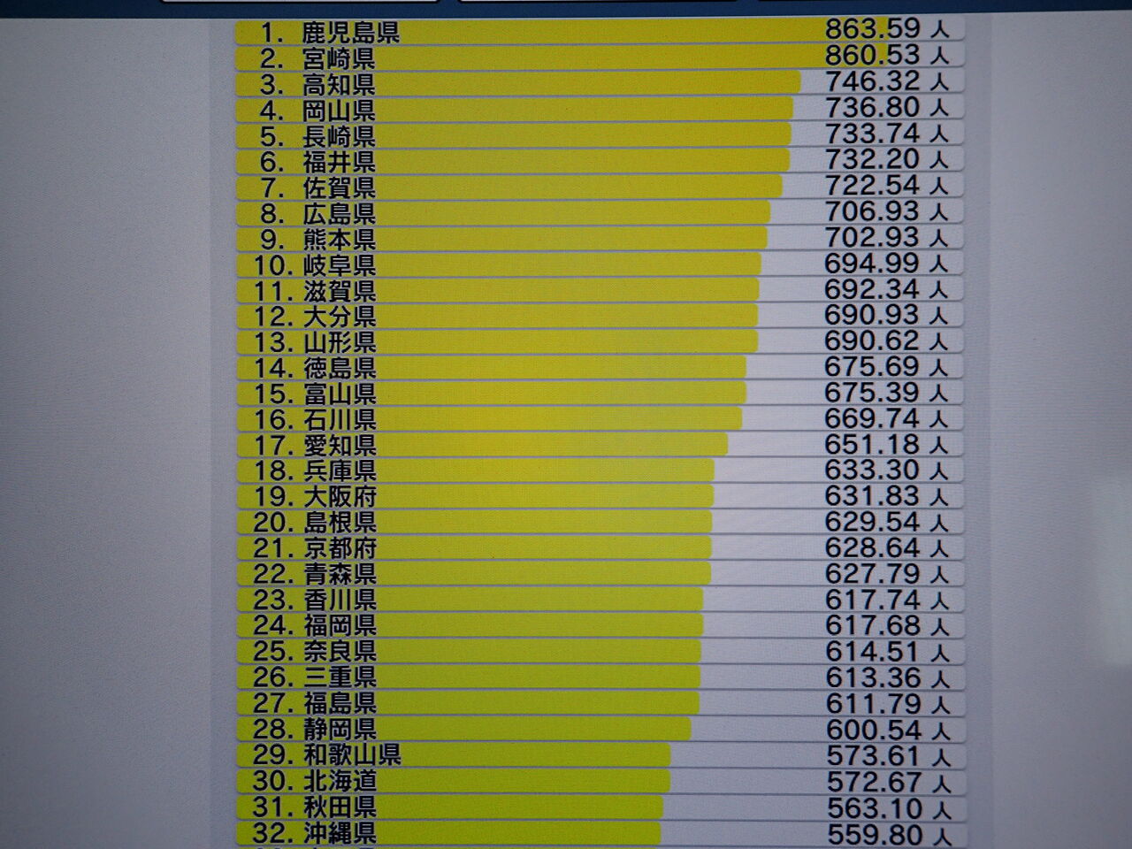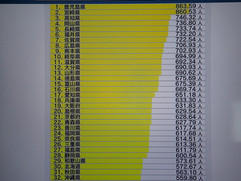 沖縄はあっという間に32位までランクダウン。代わりに両親の住む鹿児島がトップに君臨してしまっているのが気になります![]()